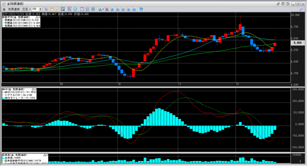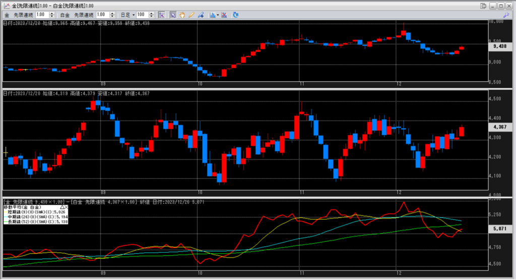 下記に金白金鞘の移動平均線のチャートを貼り付けています。