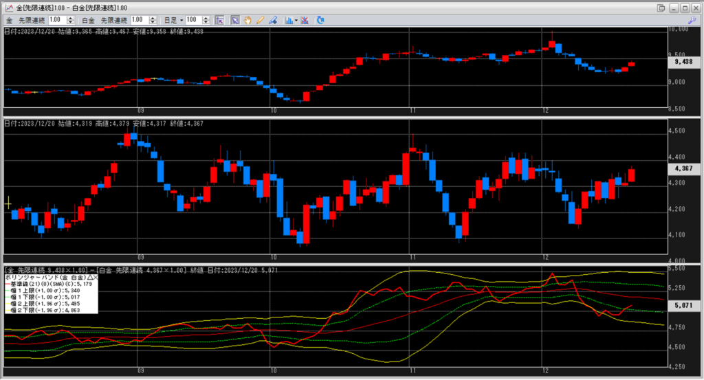 金白金の鞘をボリンジャーバンドで見ていきます。