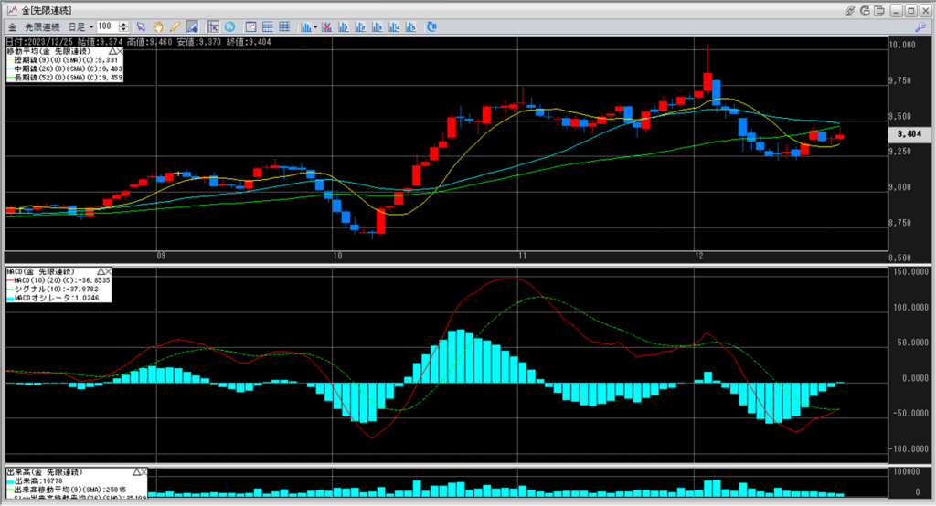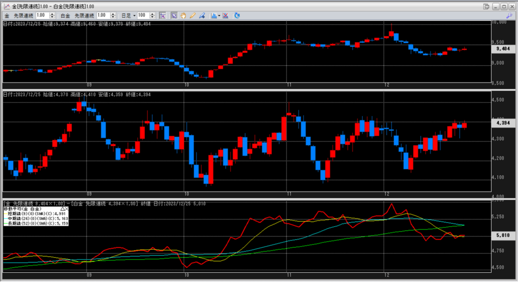 下記に金白金鞘の移動平均線のチャートを貼り付けています。