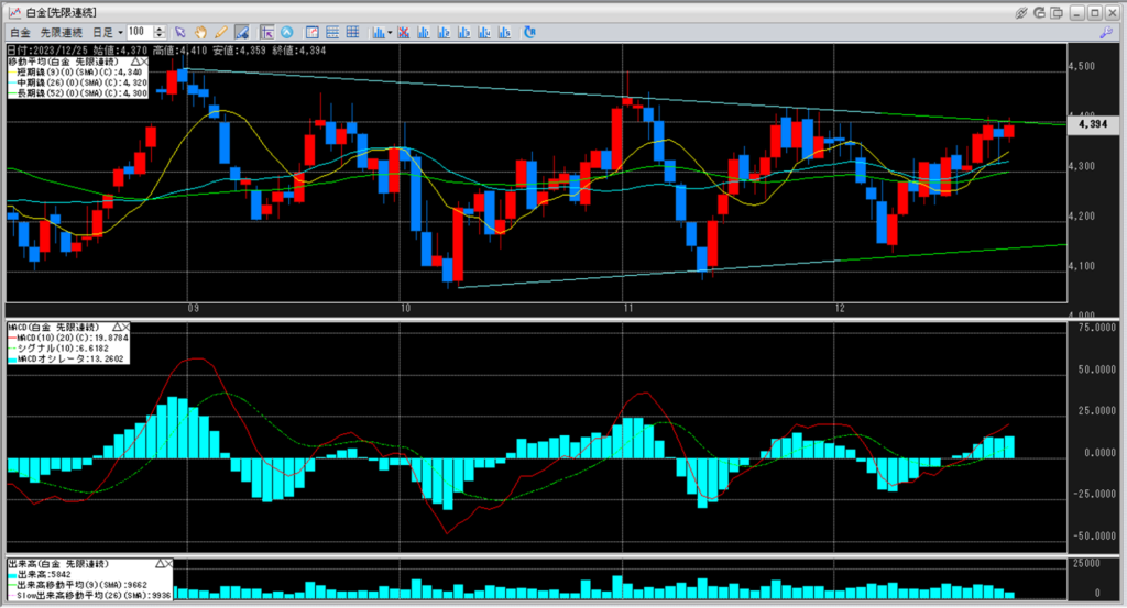 白金のチャートを見ると、4,100円から4,200円を下値とし、