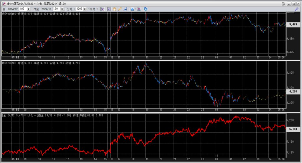 中:大阪取引所 白金 2024年12月限 1分足