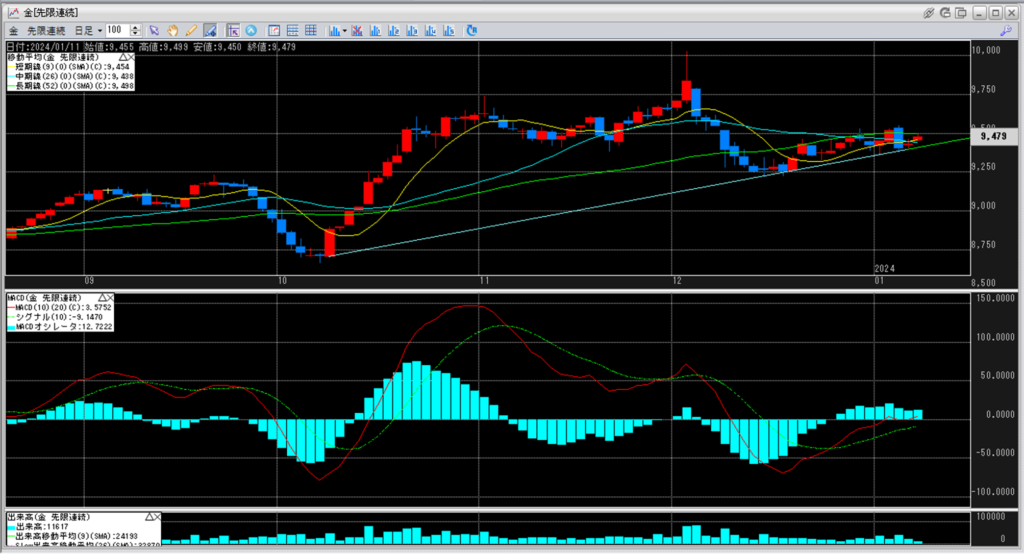 下記に金白金鞘の移動平均線のチャートを貼り付けています。