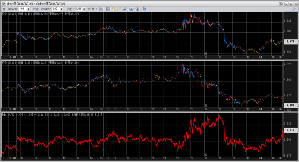中:大阪取引所 白金 2024年12月限 1分足