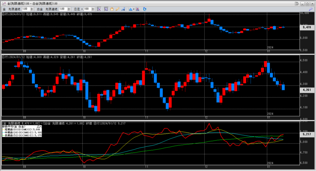 金白金の鞘の移動平均を見ていきます。