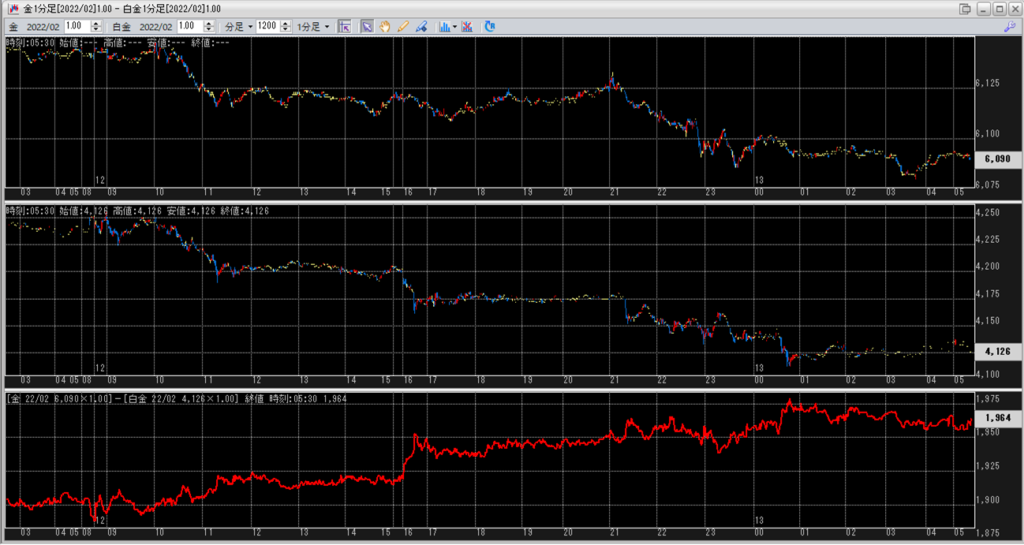 中:大阪取引所 白金 2022年2月限 1分足