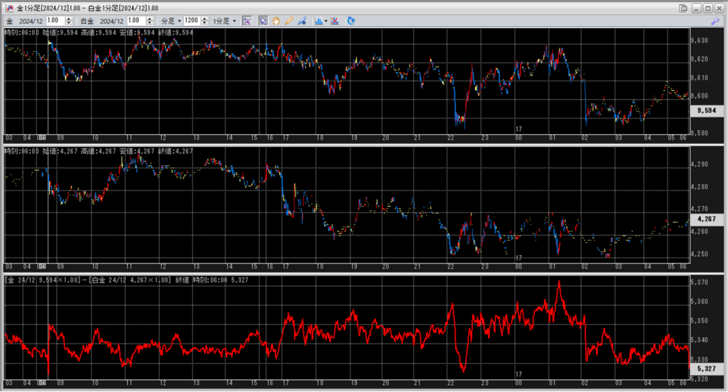 下:金白金鞘(金白金の価格差 = 金1グラムの価格 - 白金1グラムの価格)