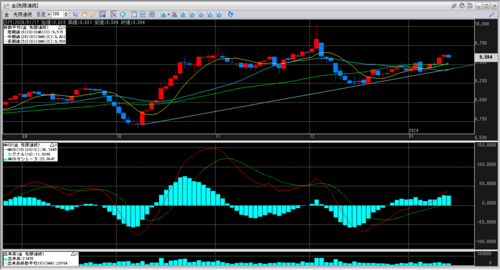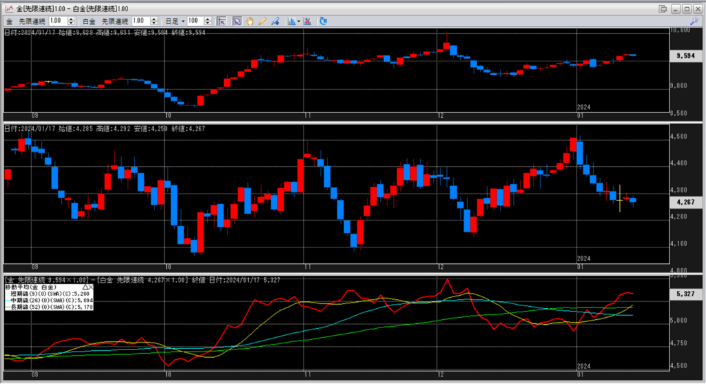 下記に金白金鞘の移動平均線のチャートを貼り付けています。