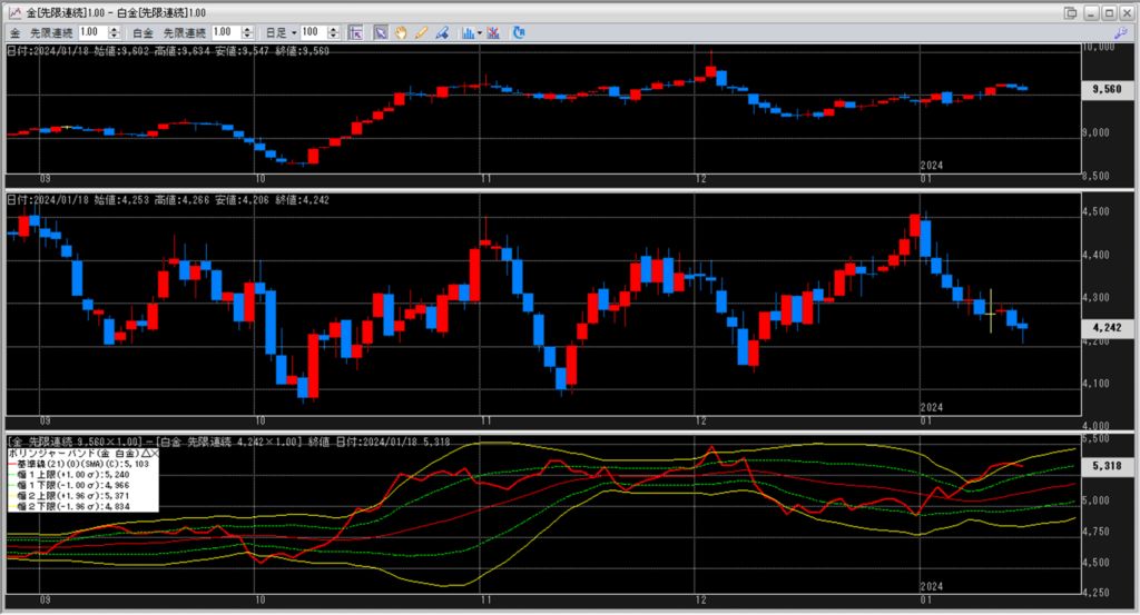 金白金の鞘をボリンジャーバンドで見ていきます。
