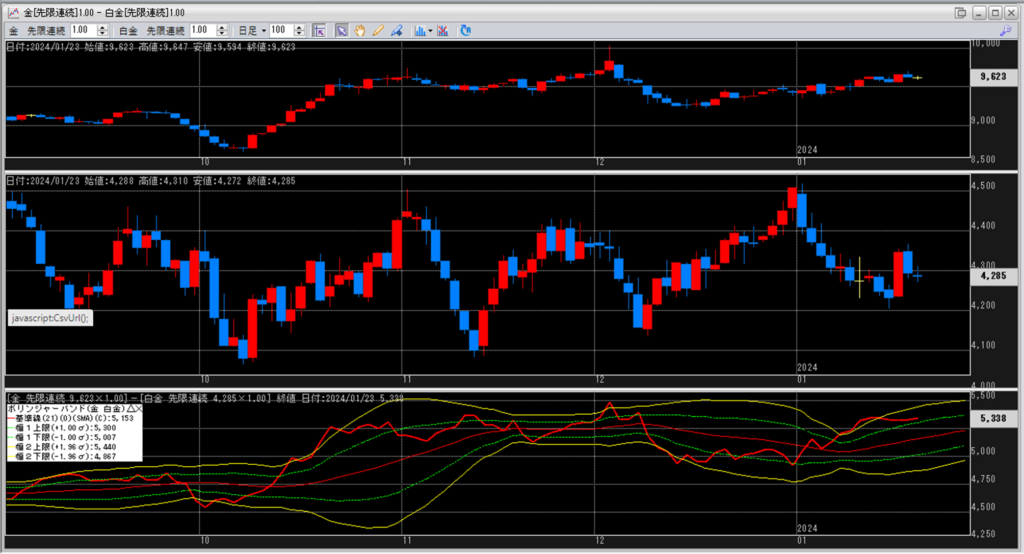 金白金の鞘をボリンジャーバンドで見ていきます。