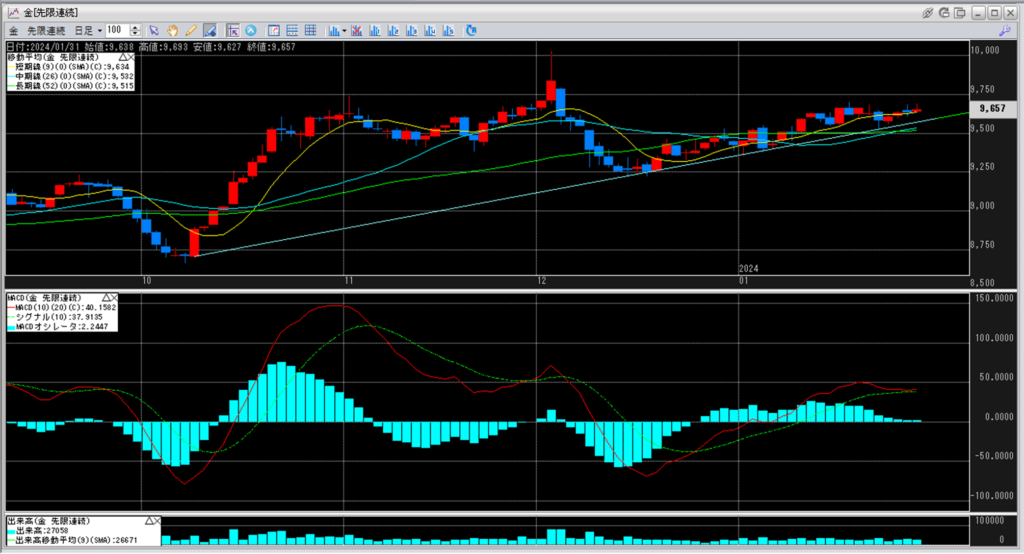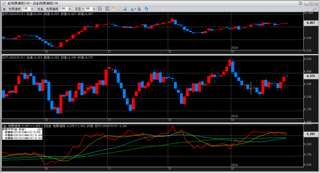 下記に金白金鞘の移動平均線のチャートを貼り付けています。