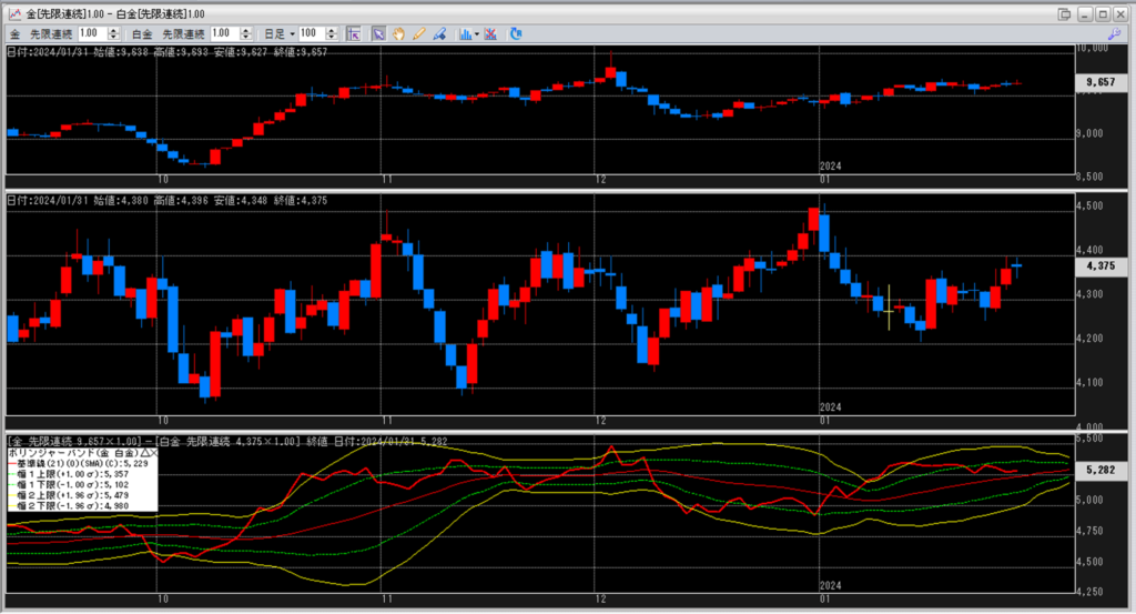 金白金の鞘をボリンジャーバンドで見ていきます。