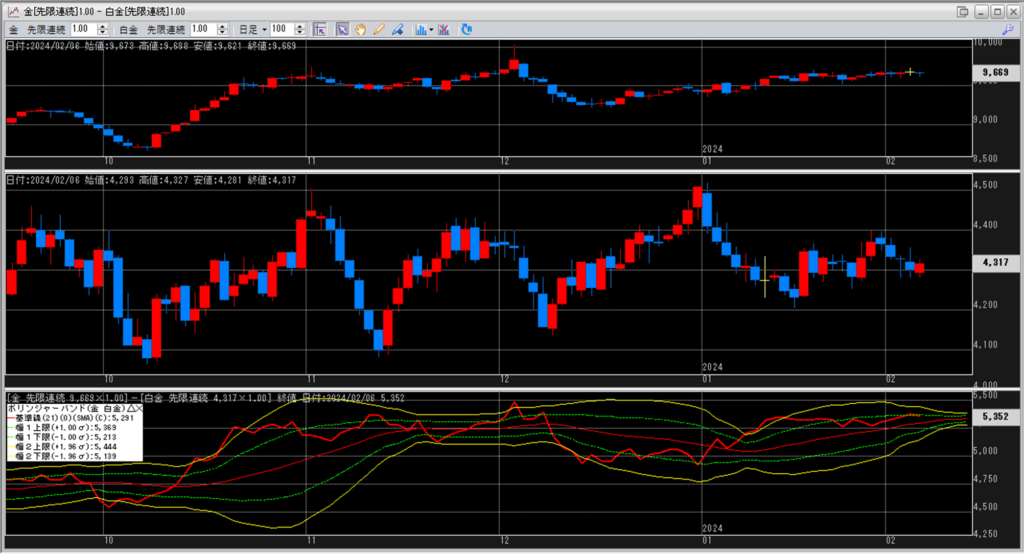 金白金の鞘をボリンジャーバンドで見ていきます。