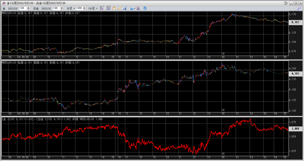 5:30には、鞘が1,966円まで拡大し、取引を終えています。