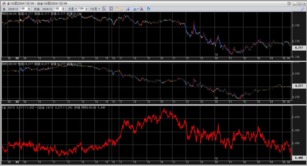現在、鞘拡大の仕掛け金買い1枚-白金売り2枚を1組、保持しています。