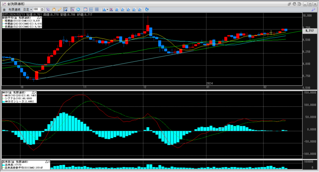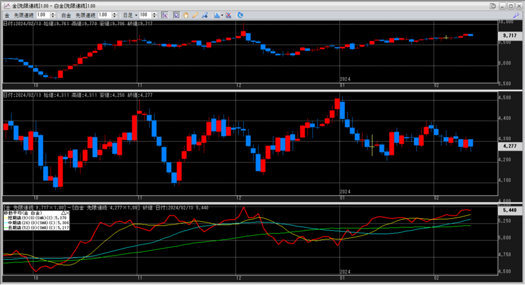 下記に金白金鞘の移動平均線のチャートを貼り付けています。
