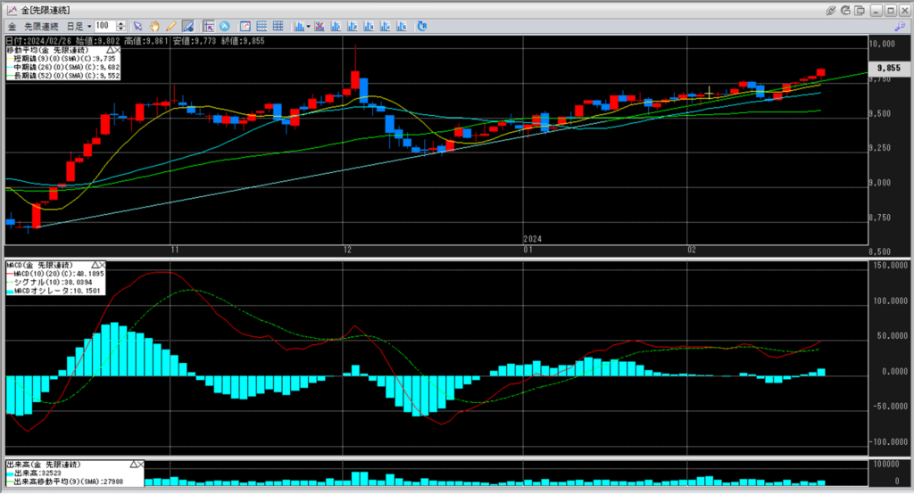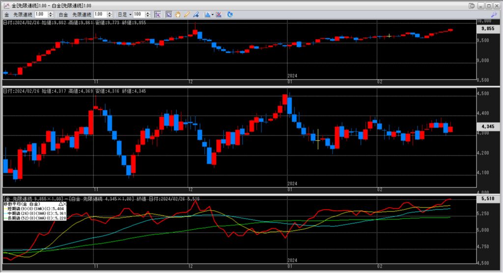下記に金白金鞘の移動平均線のチャートを貼り付けています。
