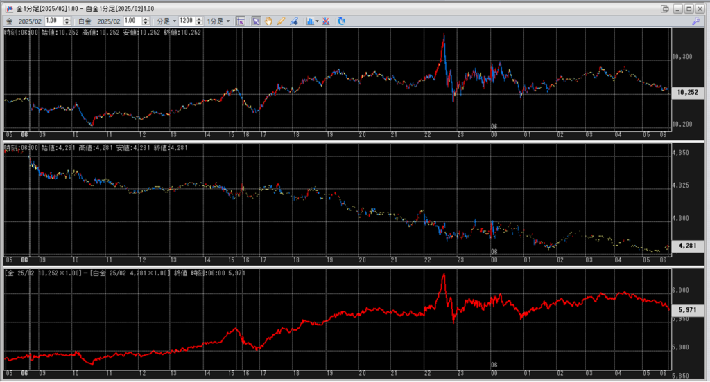 現在、鞘拡大の仕掛け金買い1枚-白金売り2枚を1組、保持しています。