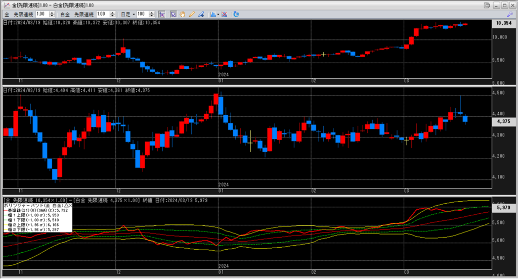 金白金の鞘をボリンジャーバンドで見ていきます。