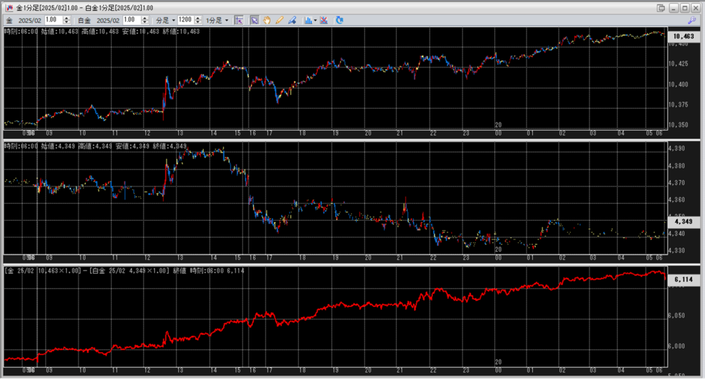 下:金白金鞘(金白金の価格差 = 金1グラムの価格 - 白金1グラムの価格)