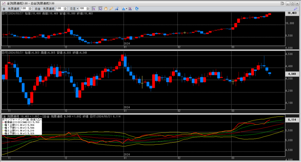 金白金の鞘をボリンジャーバンドで見ていきます。
