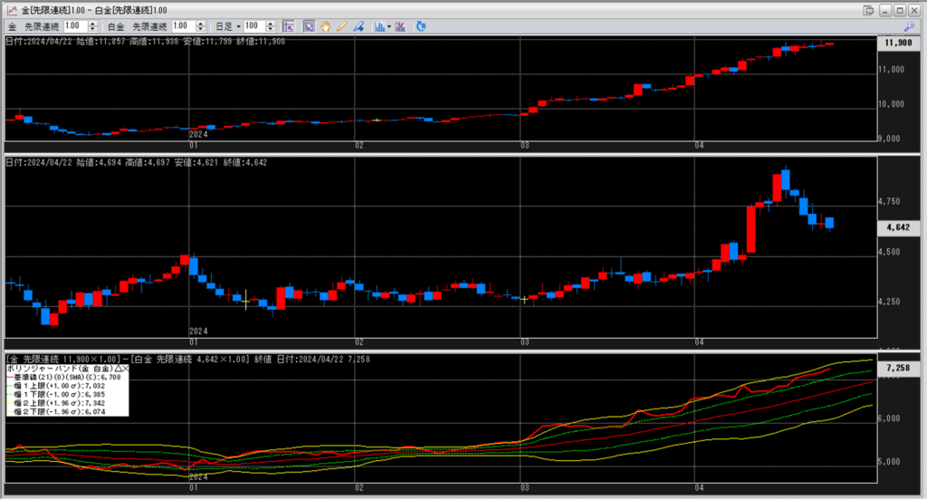 金白金の鞘をボリンジャーバンドで見ていきます。