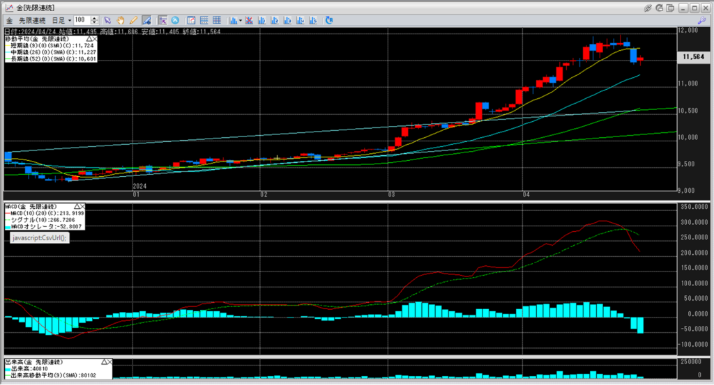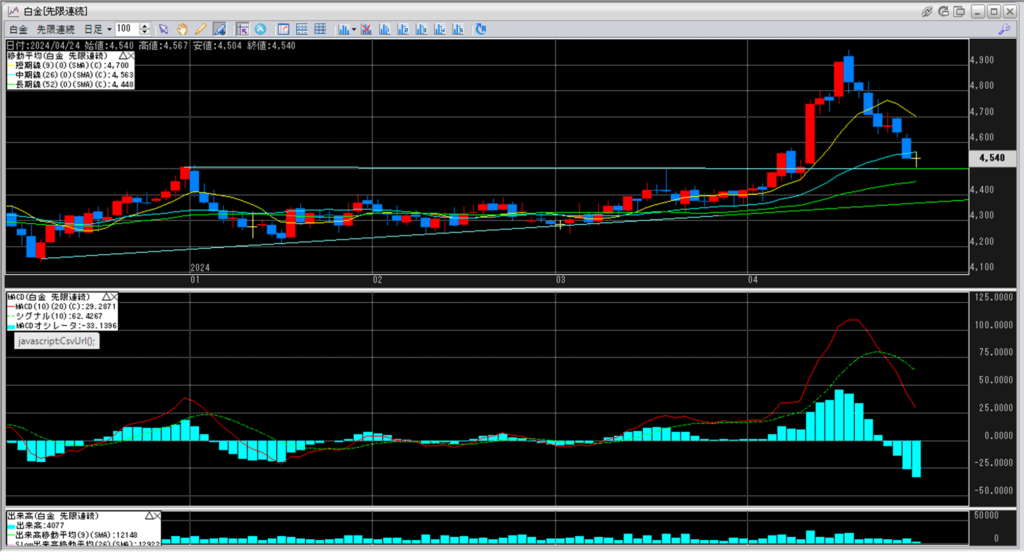 下記に金白金鞘の移動平均線のチャートを貼り付けています。