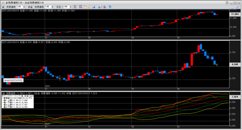 金白金の鞘をボリンジャーバンドで見ていきます。