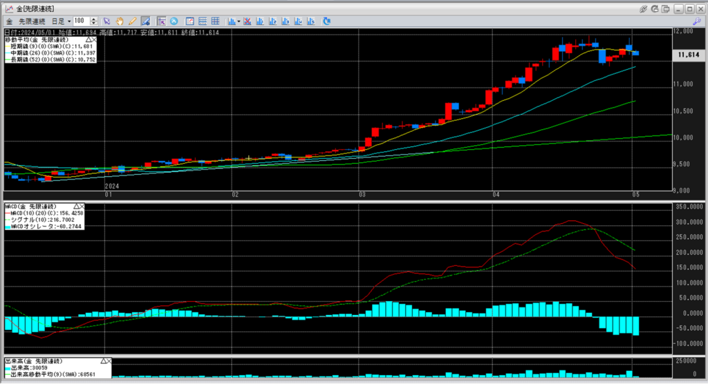 デッドクロスが常態化してきており、金価格上昇に陰りが出てきたのか。