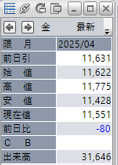 上:大阪取引所 金 2025年4月限 1分足