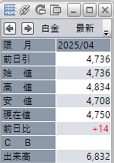 中:大阪取引所 白金 2025年4月限 1分足