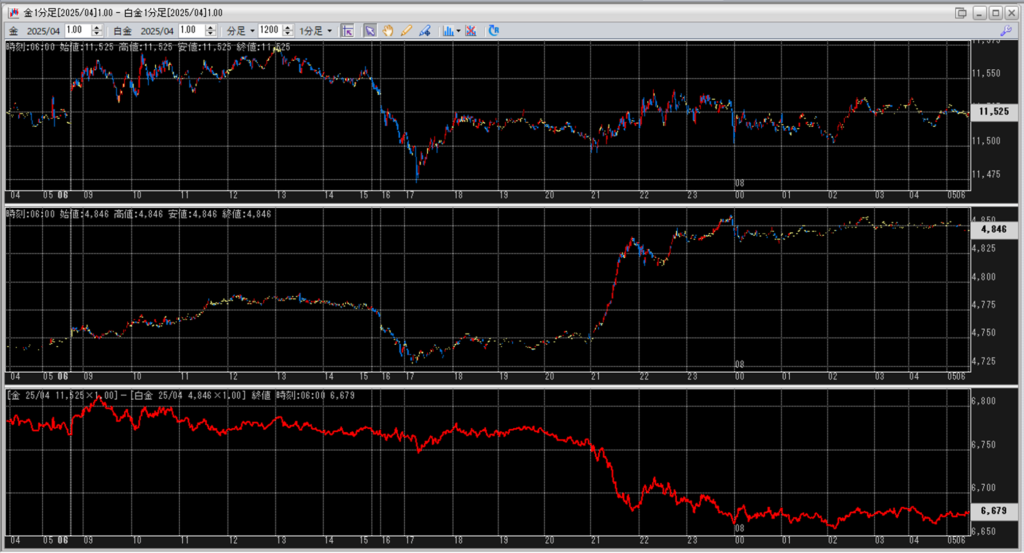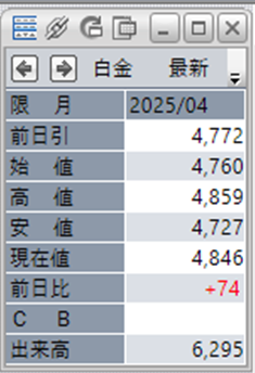 中:大阪取引所 白金 2025年4月限 1分足