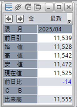 上:大阪取引所 金 2025年4月限 1分足