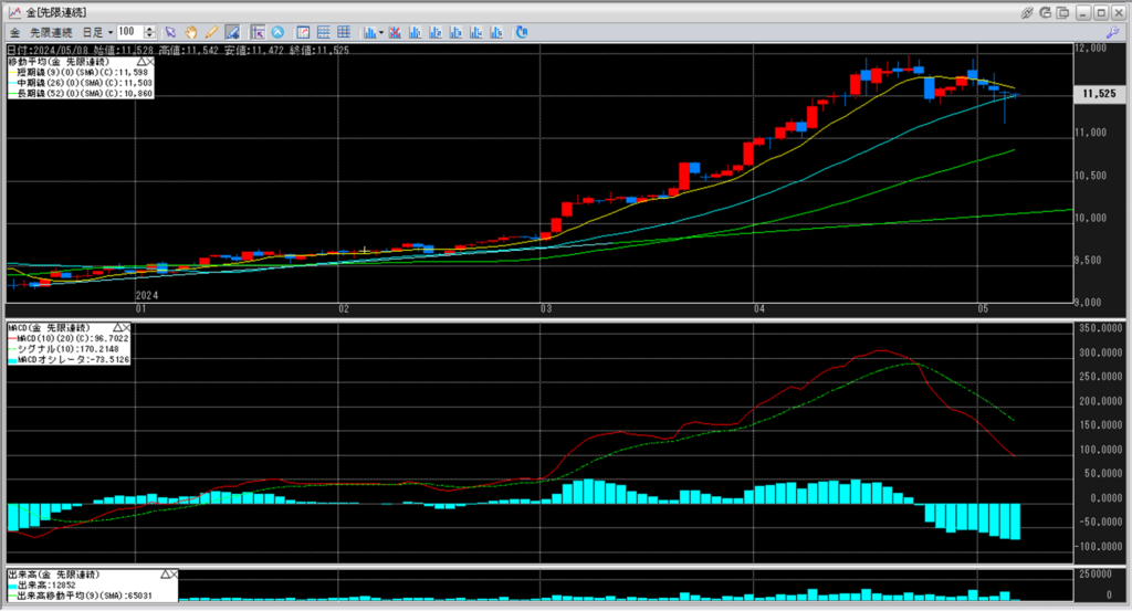 デッドクロスが常態化してきており、金価格上昇に陰りが出てきたのか。