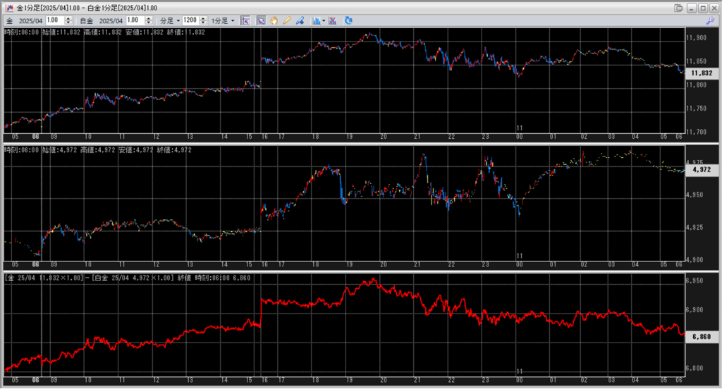 下:金白金鞘(金白金の価格差 = 金1グラムの価格 - 白金1グラムの価格)