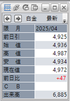 そこから順調に白金価格は上がっていき、5,000円一歩手前まで来ています。
