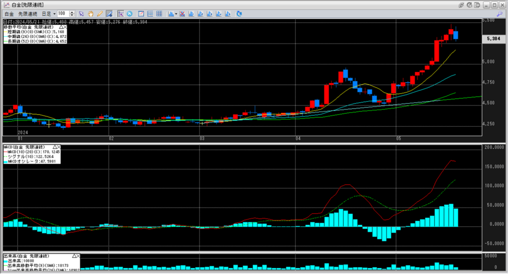 そこから順調に白金価格は上がっていき、5,000円を大きく超えてきています。