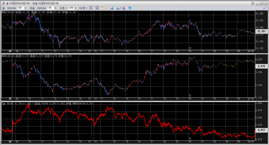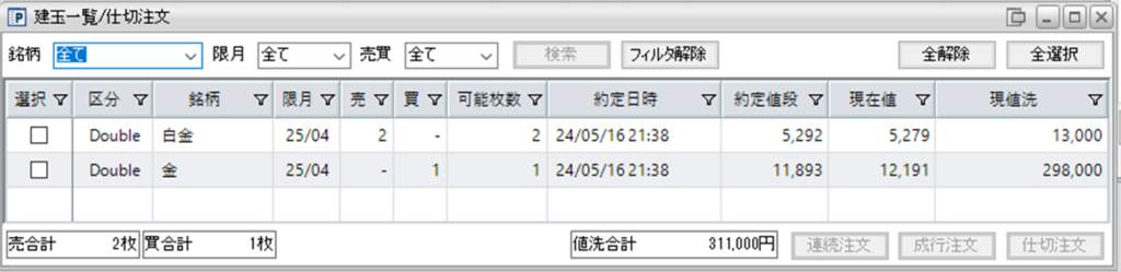 現在、鞘拡大の仕掛け金買い1枚-白金売り2枚を1組、保持しています。