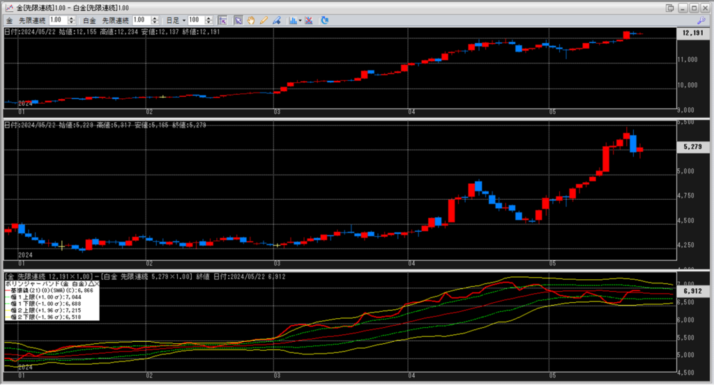 金白金の鞘をボリンジャーバンドで見ていきます。