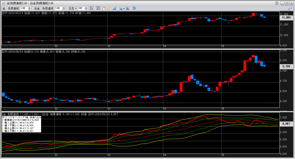 金白金の鞘をボリンジャーバンドで見ていきます。