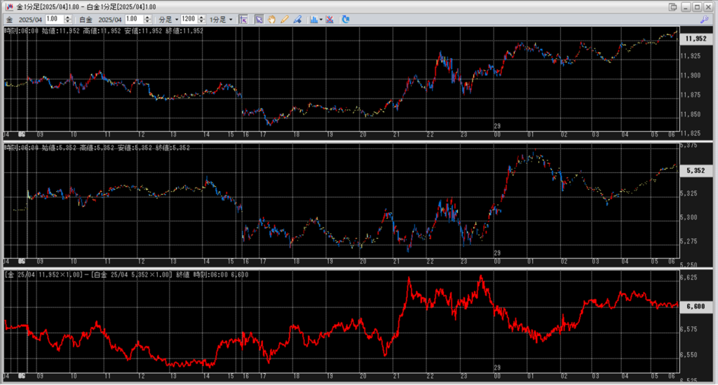 下:金白金鞘(金白金の価格差 = 金1グラムの価格 - 白金1グラムの価格)