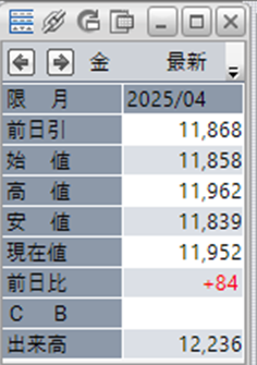 -1σである6,611円を割り込んだ6,600円で6:00の取引を終えています。