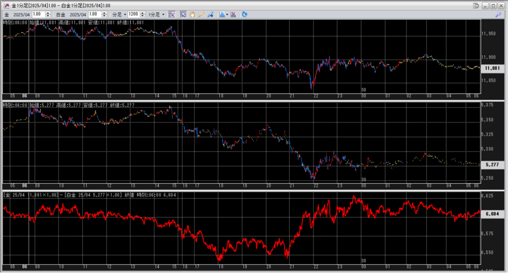 下記に金白金鞘の移動平均線のチャートを貼り付けています。