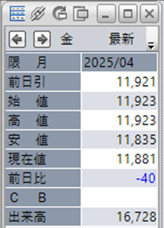 移動平均線の一番上に位置している短期線11,988円を割り込んで、