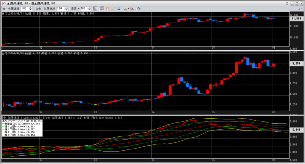金白金の鞘をボリンジャーバンドで見ていきます。
