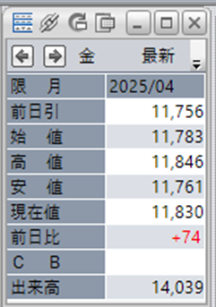 上:大阪取引所 金 2025年4月限 1分足