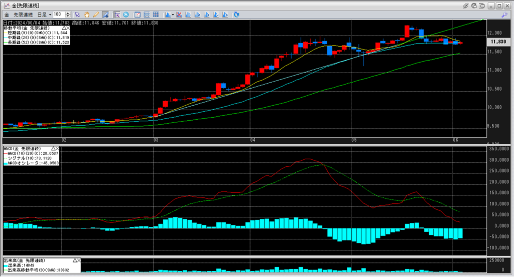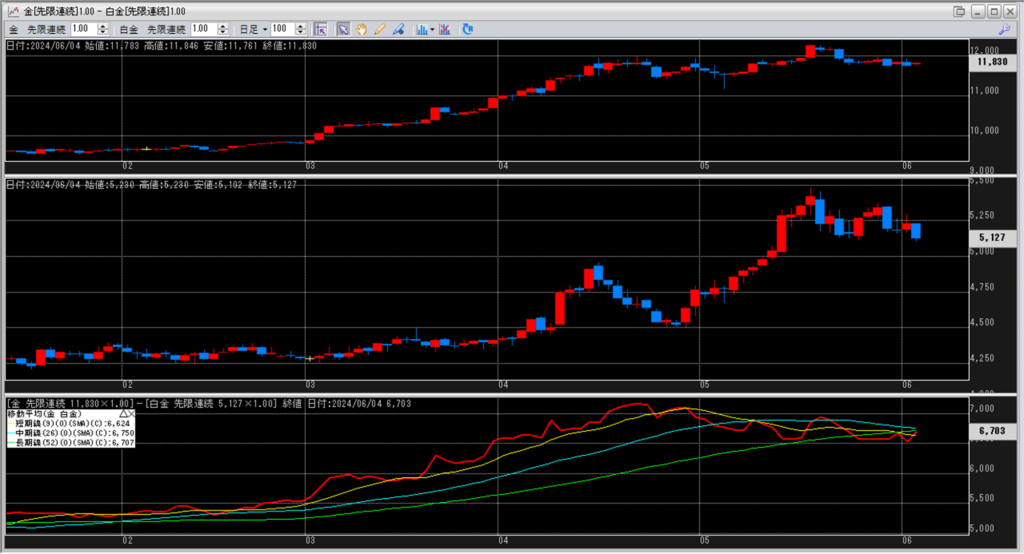 下記に金白金鞘の移動平均線のチャートを貼り付けています。