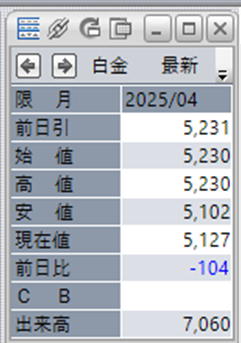 中:大阪取引所 白金 2025年4月限 1分足