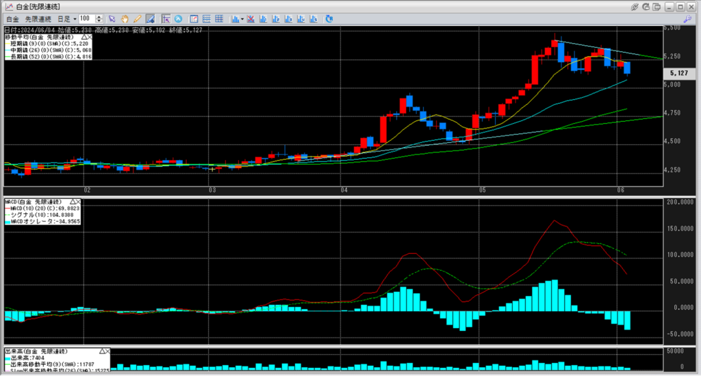 白金単体で見ると、前日比で-104円となっております。