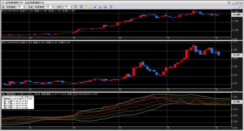 金白金の鞘をボリンジャーバンドで見ていきます。