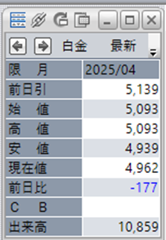 そこから順調に白金価格は上がっていき、5,000円を大きく超えていましたが、